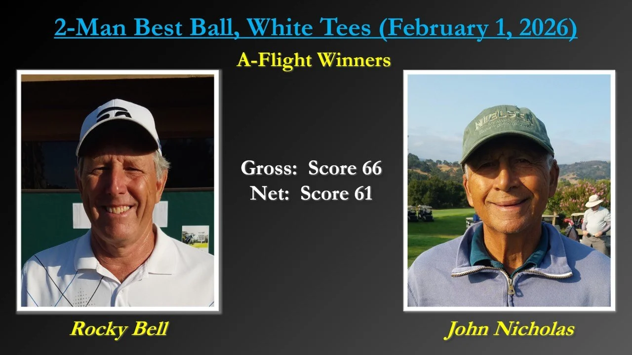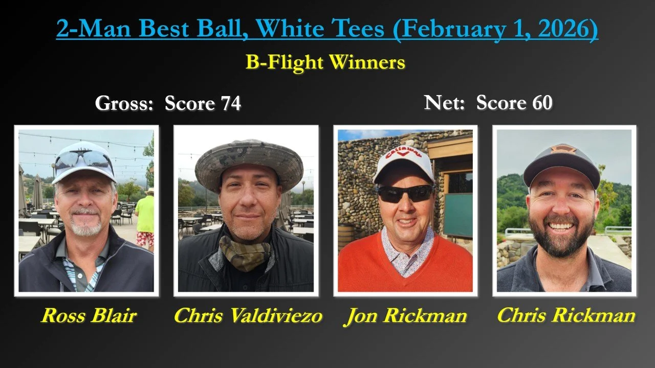 February 8th, 9 am Two-Man Superbowl Scramble (white tees)