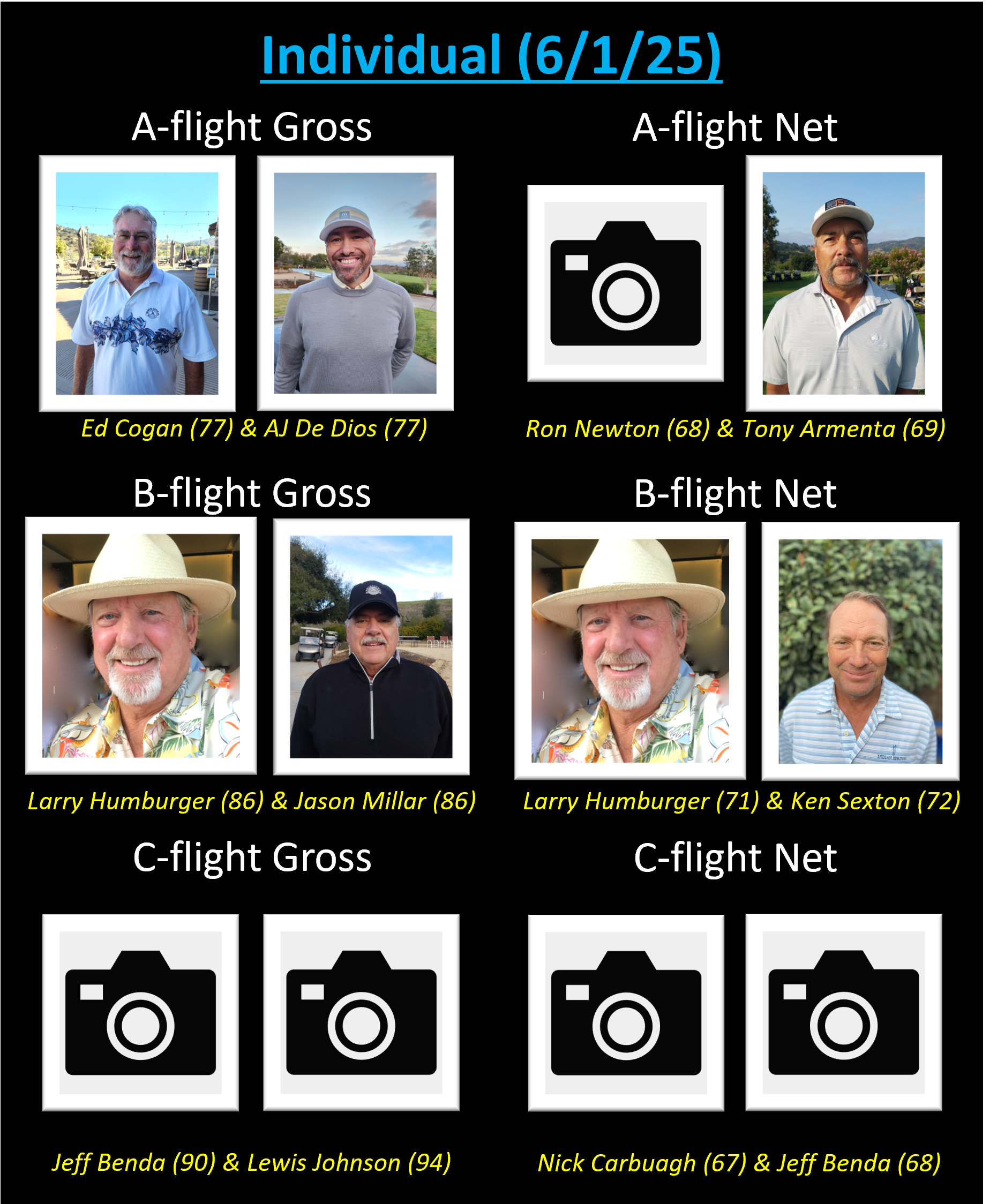 Most months, we play two tournaments; one which is an individual format and a second which is a 2-man or 4-man team event.
